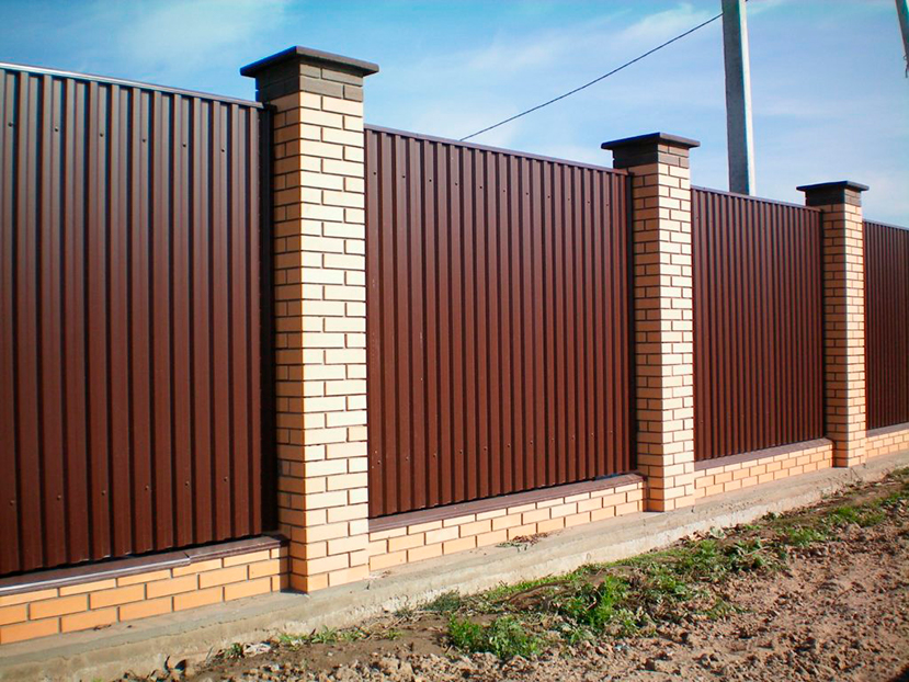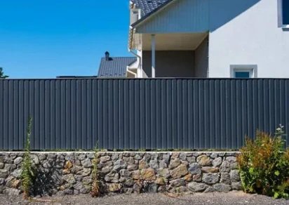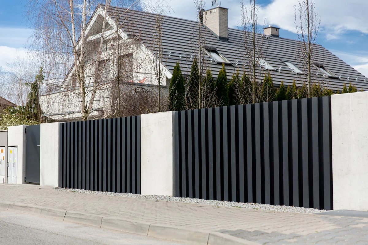 Надёжный забор начинается с крепких опор: стойки бетонируют, рекомендуемый шаг — 2–2,5 м в продуваемых местах и до 3 м в более спокойных. Каркас собирают из профильной трубы, листы фиксируют саморезами с термошайбами, оставляя температурные зазоры — это предотвращает деформацию летом и растрескивание зимой. Торцы закрывают заглушками, стыки оформляют Н- или U-профилями — секции выглядят ровно и служат дольше.