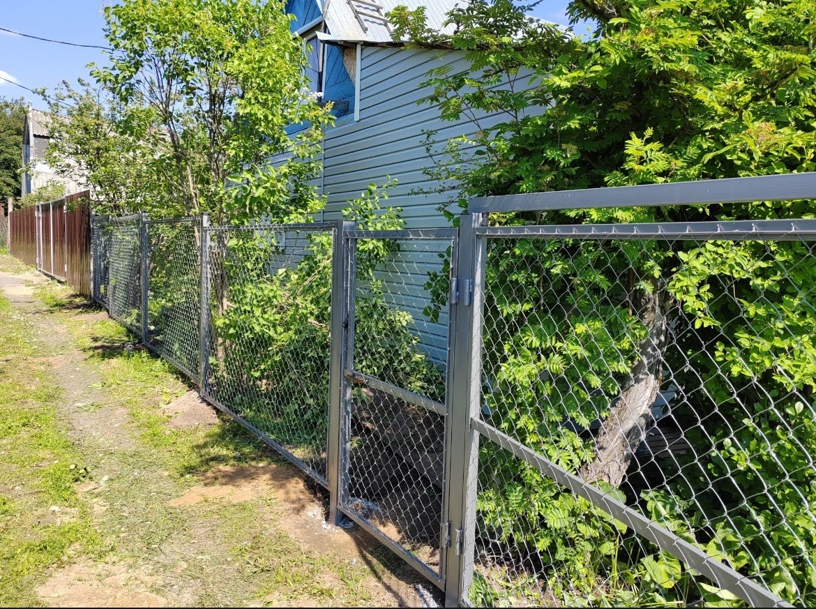 Ограждение из сетки-рабицы высотой 2,0 м — высокий, лёгкий и бюджетный вариант